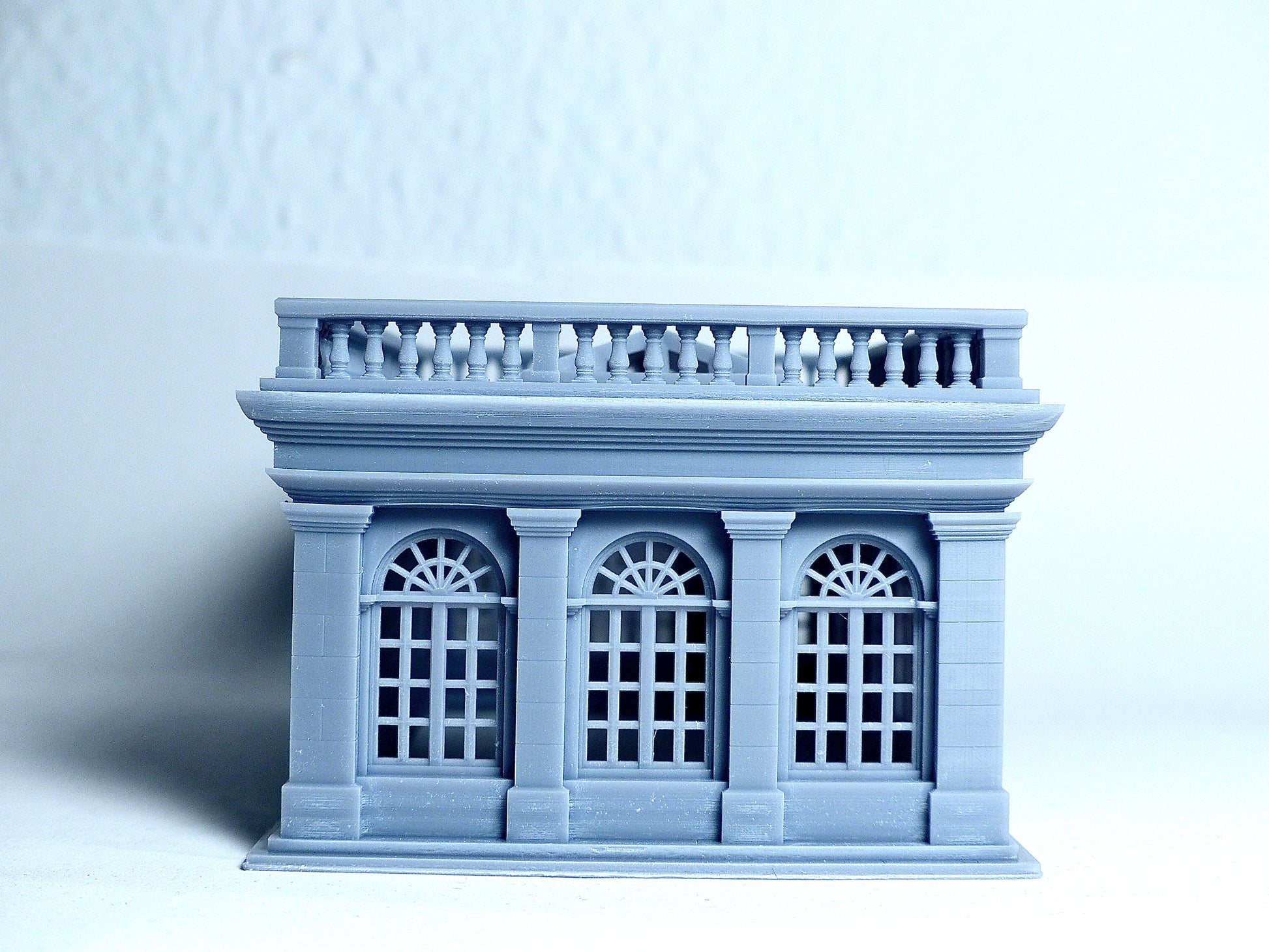 The building is a classic pavillon like detached house with arched windows and columns. This kind of building can be used as meeting room, diner house or salle de dégustation du vin. Often seen in the garden of European castles. A lot of detail can be seen if you look at it closely. The model is designed using CAD programme and 3D printed with high quality resin to print the fine detail. Available in N scale and HO scale. Some photos were taken with N and HO scale together to compare the size.