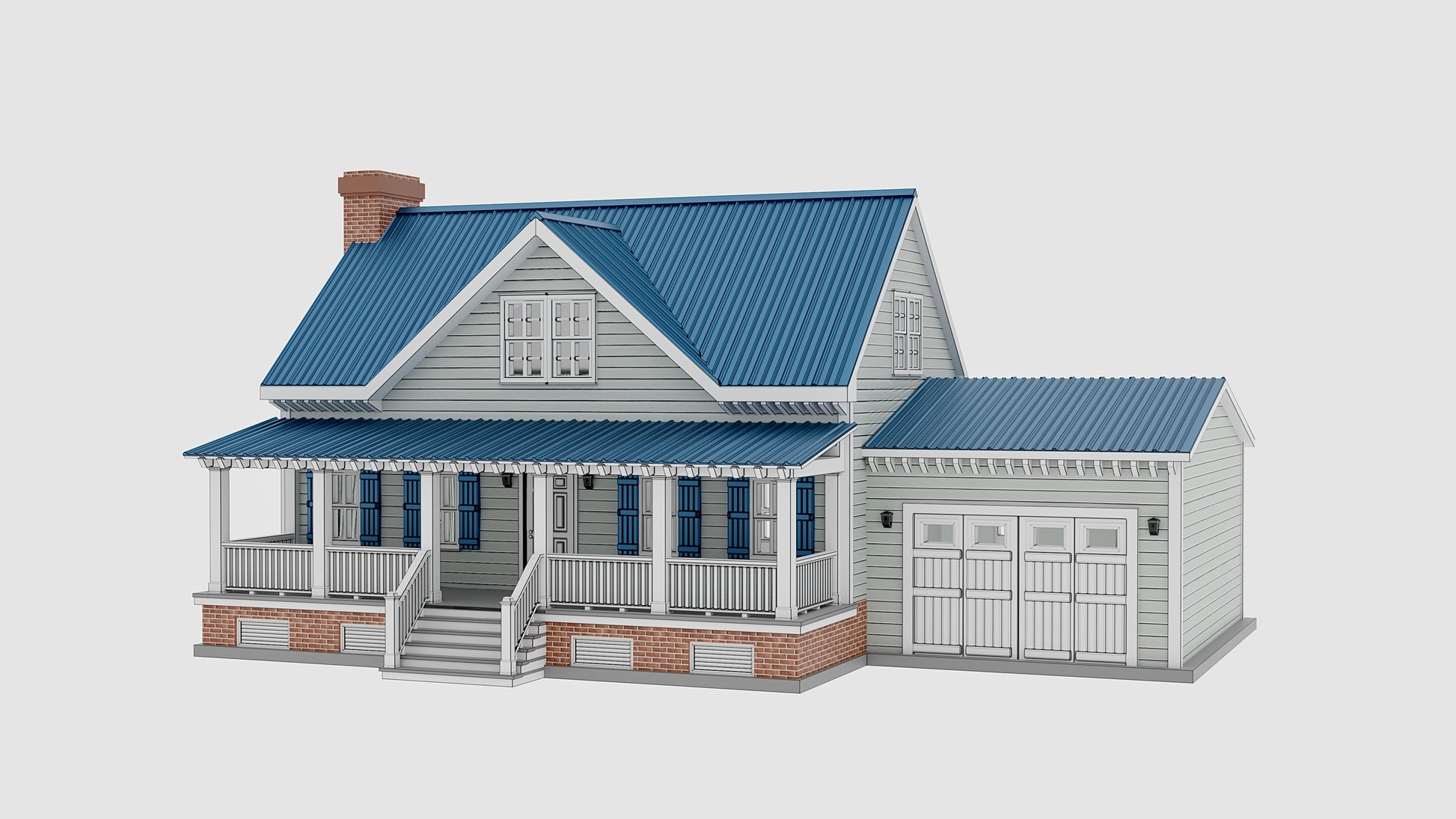 The building comes unpainted in grey, it’s ready to be painted.